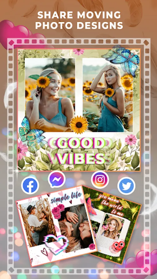 This live photo frame editor can help you make animated pictures easily. Get “two picture frames” live in this pic editor. Express yourself and your creativity because this app has amazing tools to offer. Tell us about your experience with our photo maker and rate this app.