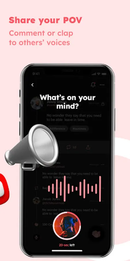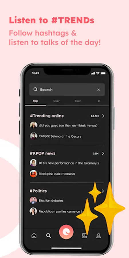 You don’t need to be an influencer to speak up. Come as you are and speak out your voice in 30 seconds! If you want to talk longer , you can go LIVE. The audio can be live-streamed, or you can replay it at any time you want! You’ll feel much better after talking to other members.