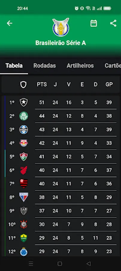 In addition to the available championships, you can follow the games of the day via the FUTAPP - Atlético Mineiro app