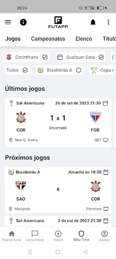 In addition to the available championships, you can follow the games of the day on FUTAPP