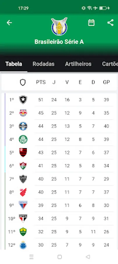 In addition to the available championships, you can follow the games of the day on FUTAPP