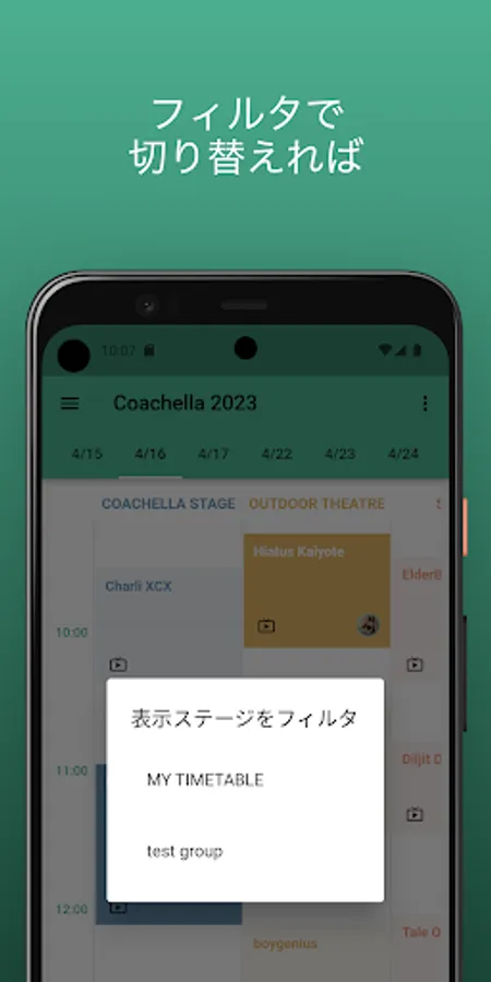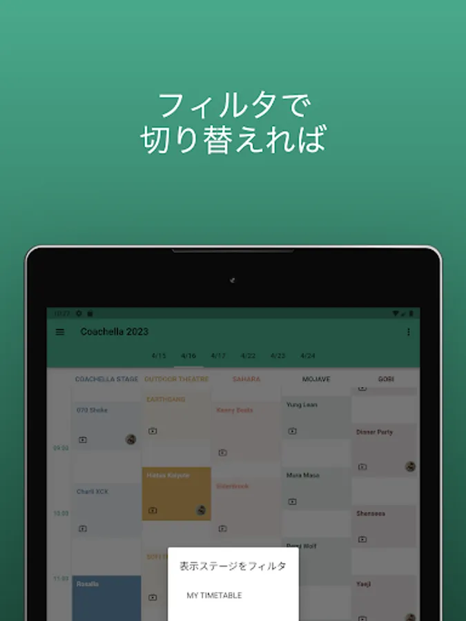 ●You can easily switch the display of all stages, the timetable you want to see, or the timetable of your group with a single button.