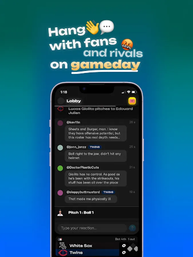 With live refreshing comments and play/pause functionality, you won't miss a single moment of the action. Get play-by-play updates and video highlights in real-time while reacting to comments from other fans. Follow friends and invite them to join games that are heating up.