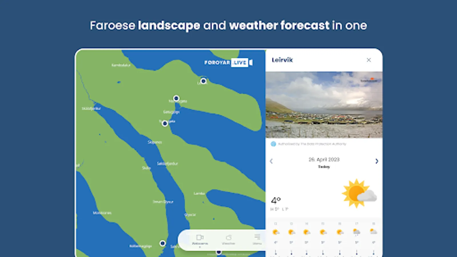 The Faroe Islands Live app provides you with live webcams from villages and towns in the Faroe Islands, giving you the opportunity to view stunning landscapes and unique ways of life anytime, anywhere.