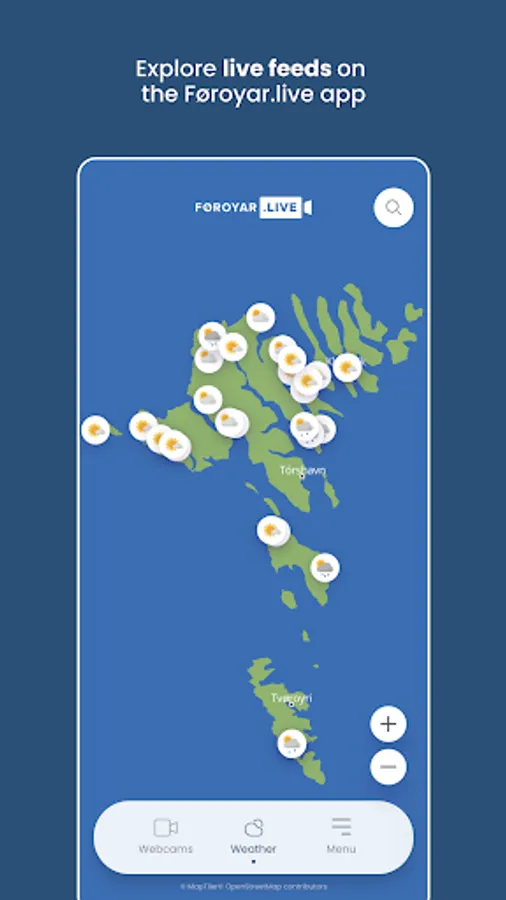 Whether you're longing for the beautiful nature or you're curious about the weather, you can easily access the live feeds on the Faroe Islands Live app.
