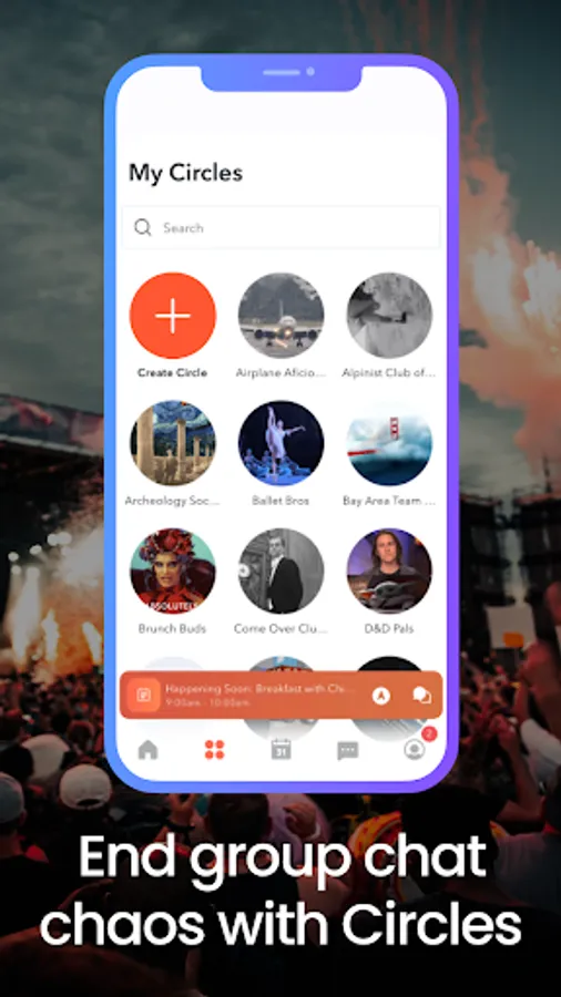 Eliminate group chat chaos with Hangtight circles, This feature lets you build virtual friend groups based on shared interests or preferences, regardless of the group size. With just a single tap, you can invite everyone in your circle to an event. Additionally, each circle comes with a dedicated group chat for constant communication and coordination.