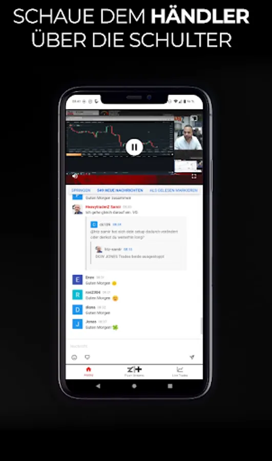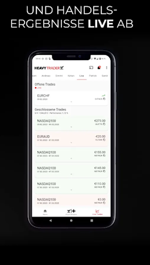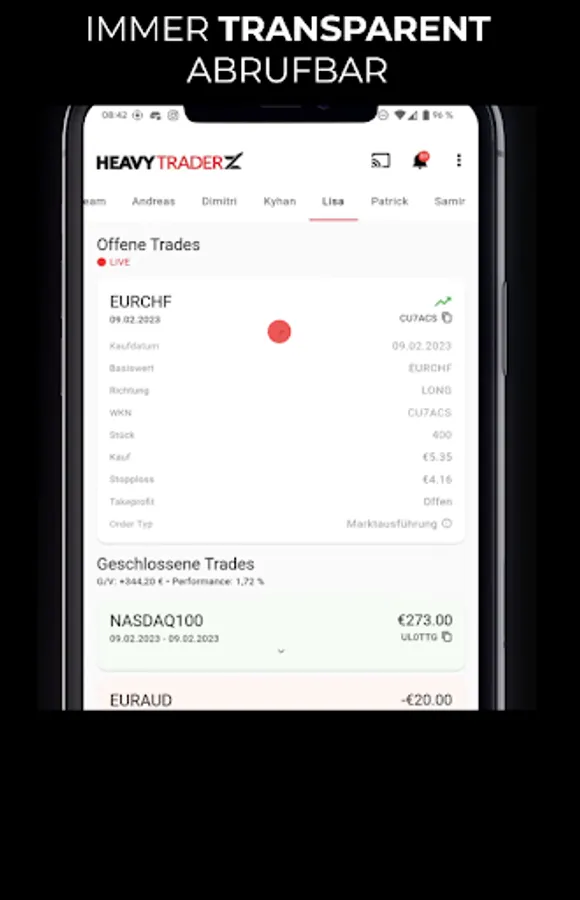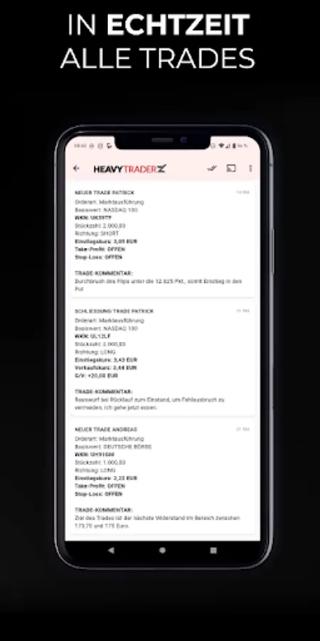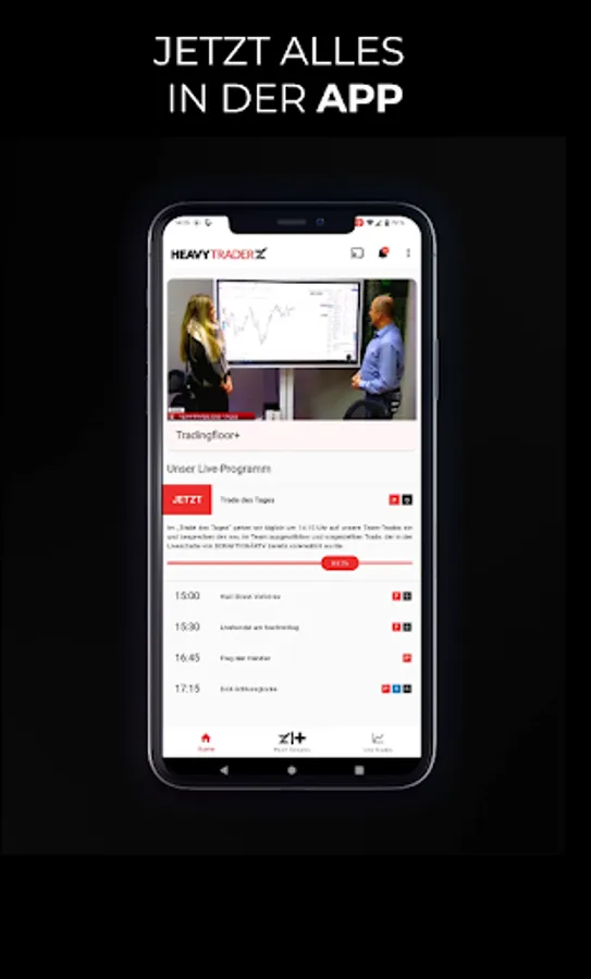 With the app, HeavytraderZ offers you all the technical possibilities to take part in live events, so that you have the feeling of being part of the trading team and participating in the know-how of the traders.
