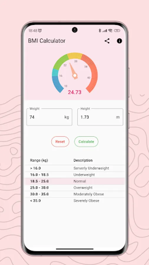 This BMI calculator is a simple and easy to use app that calculates your Body Mass Index. Just enter your height and weight, and the app will do the rest!