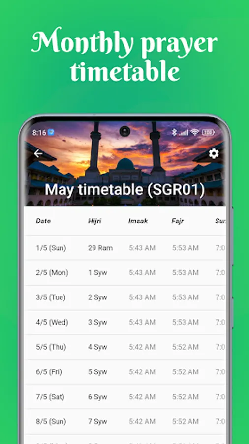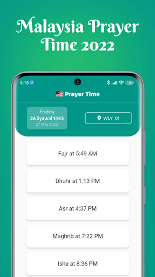 Prayer time data is coming from JAKIM (Jabatan Kemajuan Islam Malaysia) to deliver to most up to date data to you.