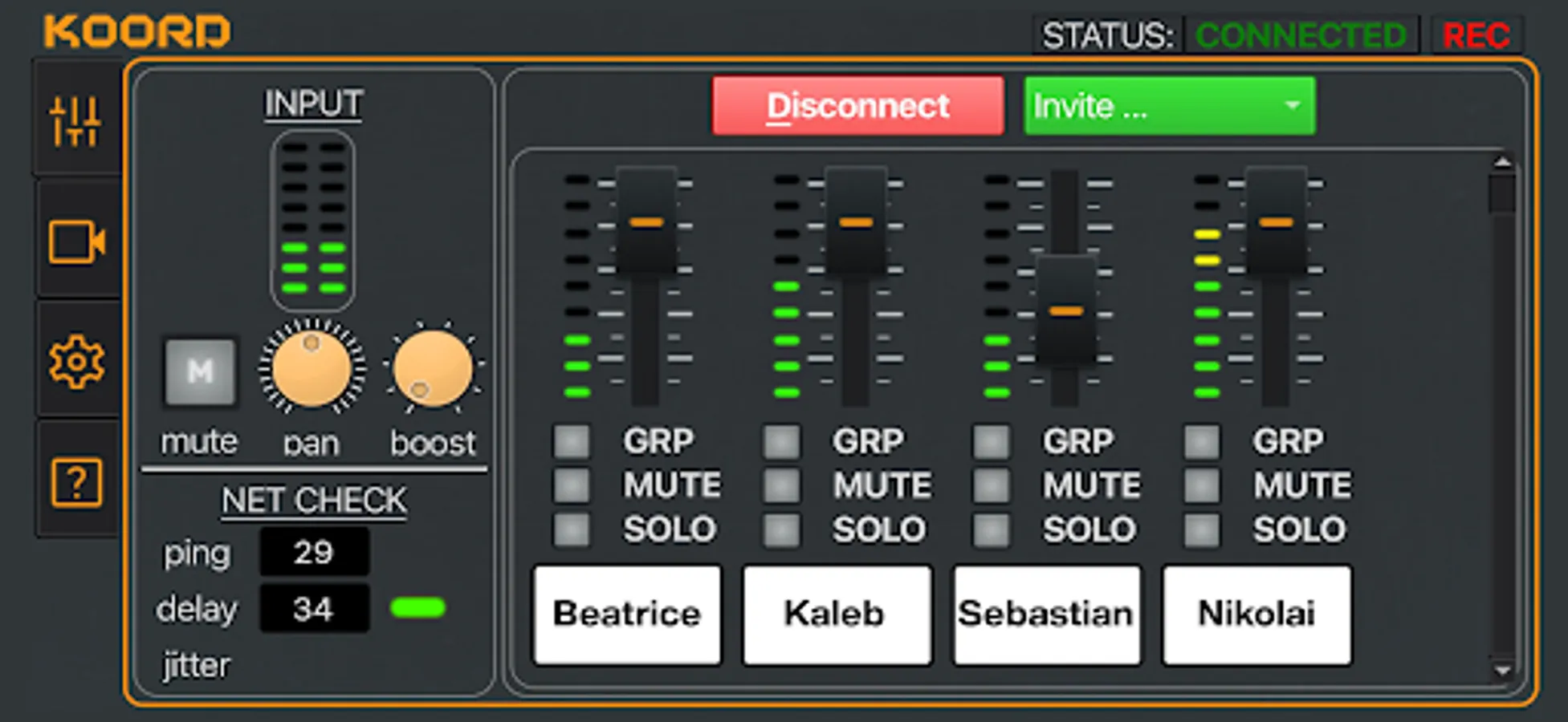 Furthermore, flexibility is KOORD’s new watchword. We want you to be able to rehearse online with your bandmates without having to carry a computer with you everywhere you go. That’s why we also made the Koord App available for your mobile devices (Android phones and tablets).