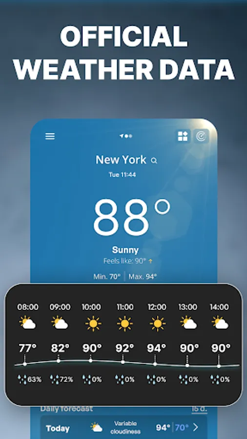 And if you're looking for even more convenience, our live weather widget makes it easy to be informed of the latest weather conditions without even opening the app. With options for hourly weather widget you can customize your widget to show the info that's most important to you.