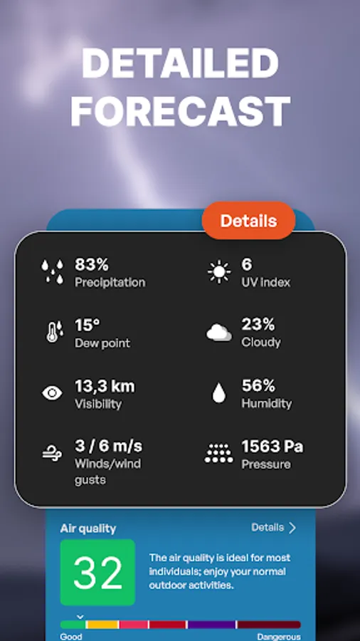 Finally, for those who are interested in monitoring weather beyond their local weather region, our meteo radar provides detailed information about weather around the world. Whether you're planning a trip or just curious about what the weather is like in other parts of the world, our app has got you covered.