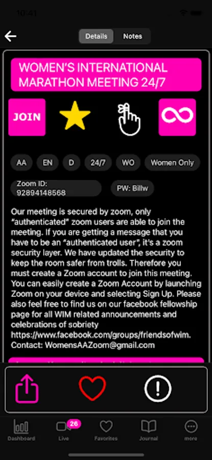 But that's not all. AA/NA Live! offers a range of features designed to enhance your recovery journey. For those seeking meeting attendance verification, our app provides a seamless solution. Say goodbye to the hassle of requesting verification emails from meeting hosts or dealing with an assortment of emails. AA/NA Live! automatically records your attendance upon request, preserving your privacy and generating clean, concise, and verifiable attendance reports.