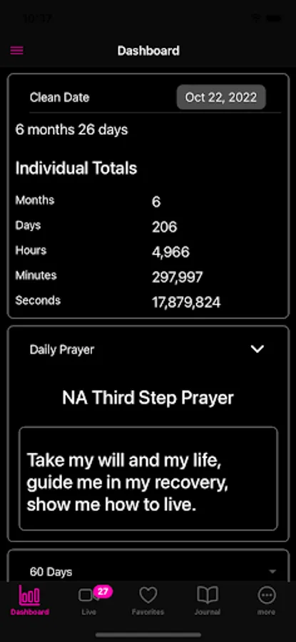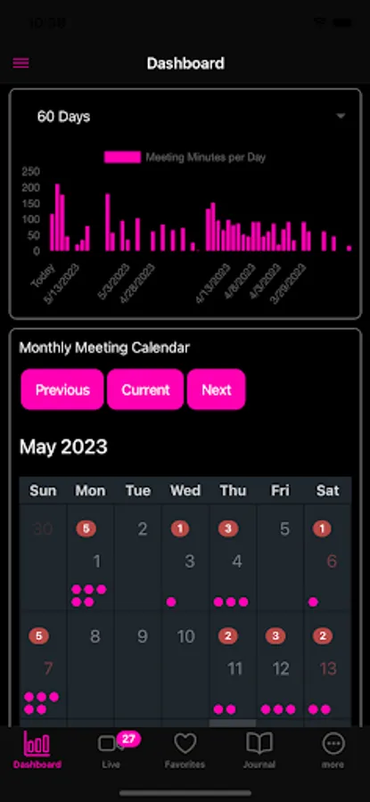 To further support your recovery journey, AA/NA Live! offers meeting reminders through push notifications. Never miss an important meeting again as our app keeps you informed and accountable. Additionally, our recovery dashboard provides essential tools, including a clean time counter, a 90 in 90 counter, a meeting minutes per day graph, and a monthly meeting calendar, empowering you to track your progress and stay motivated.
