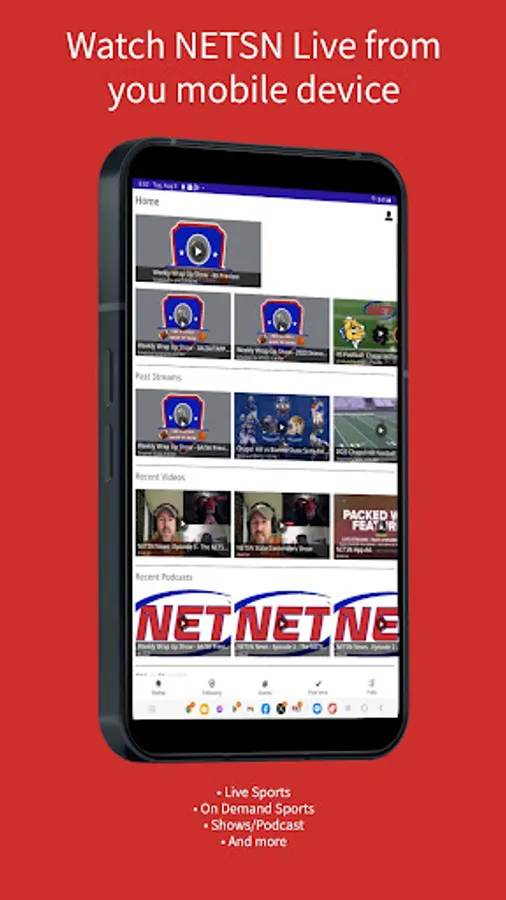 * Listen to our Podcasts inside the App * View and update live scores for every game for Football, Basketball, Baseball, & Softball * Follow your favorite high school teams * Team schedules * Pick'em Challenge each week * NETSN Weekly Polls * Push notifications for scores, live broadcasts & more