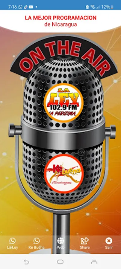 My favorite Radio to listen to the best hits and the best programming. The best of music on your cell phone 24 hours a day. Radio La Ley Nicaragua and Ke Buena.