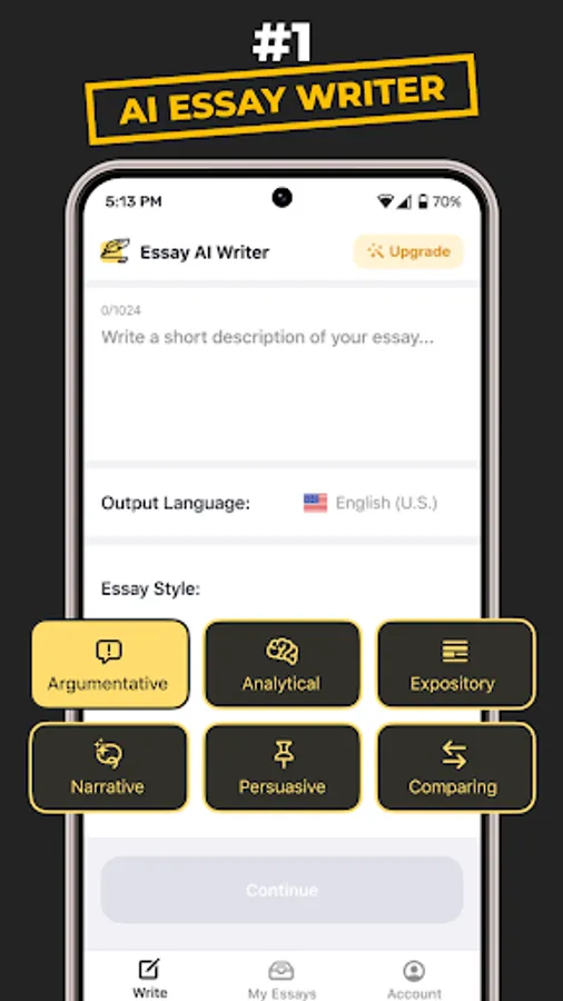 Introducing our innovative essay writing AI tool for students, professionals, and anyone in need of high-quality, well-written essays. This app is designed to make the essay writing process easier, faster, and more efficient than ever before.