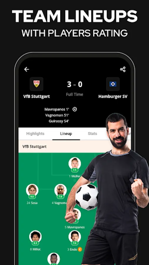 Keep up-to-date with all football fixtures, scores, stats and line-ups from your favorite teams
