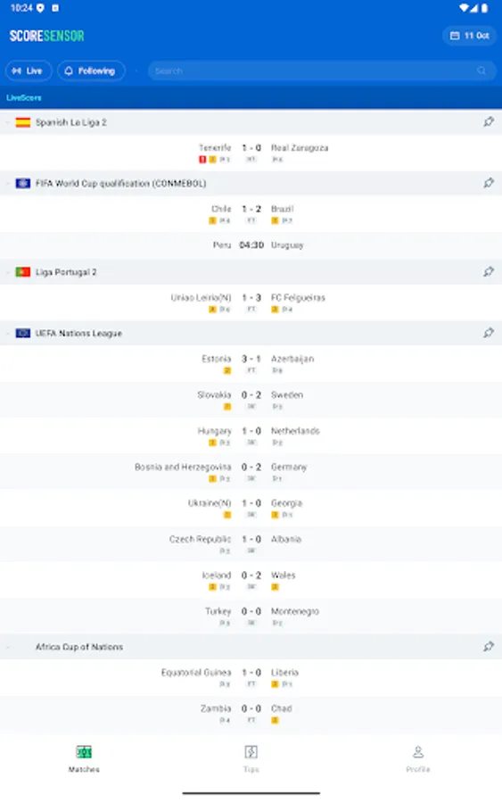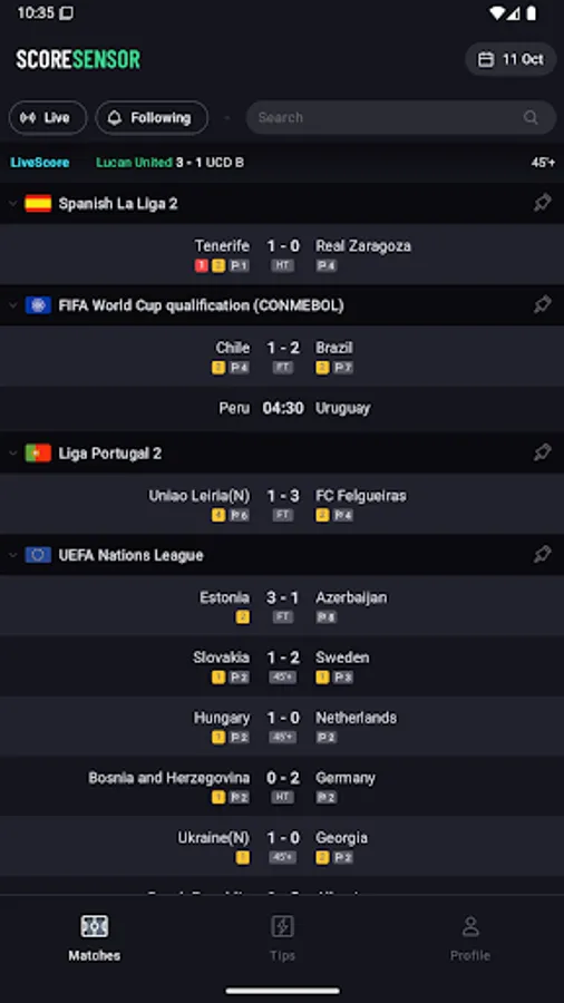 We deliver real-time notifications for cards, corners, and goals directly to your phone at lightning speed. Simply swipe left on the match you want notifications for and enable the updates you need. With data from over 200 countries, you can easily and quickly stay updated on sports events from all around the world with accurate and instant notifications.