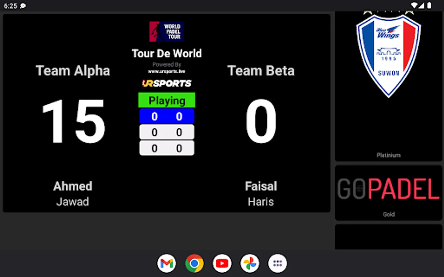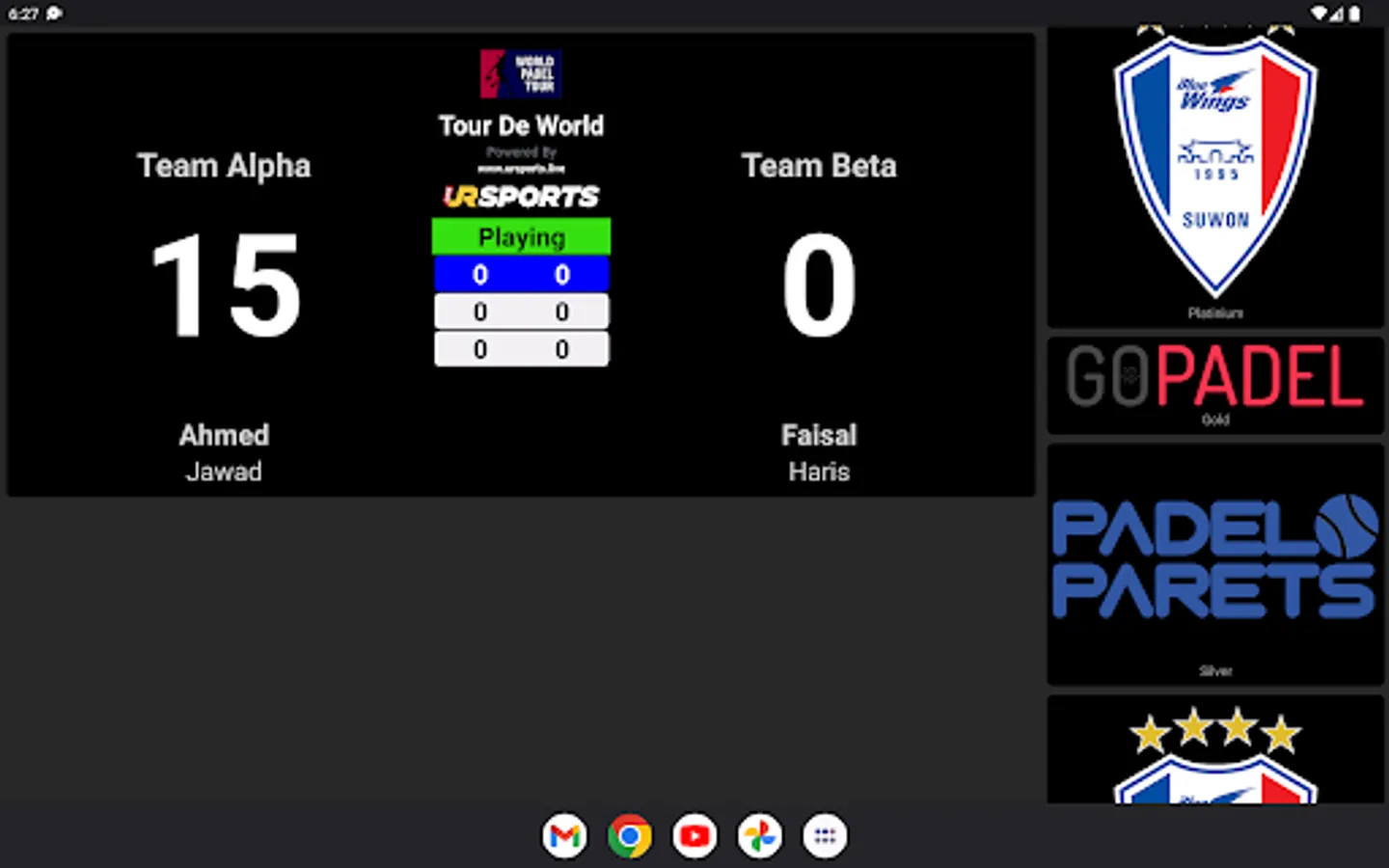 Scoreboard app for Padel and Tennis Games. Soon streaming option will be available