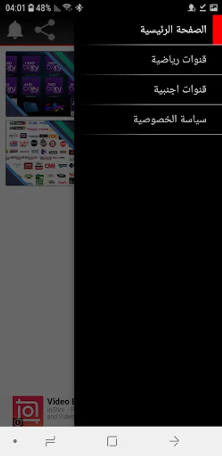 The following sections are available in the app: INTERNET TV, IPTV, TV +, FAVORITES, EPG, DISABLE ADS, SEARCH, SETTINGS.