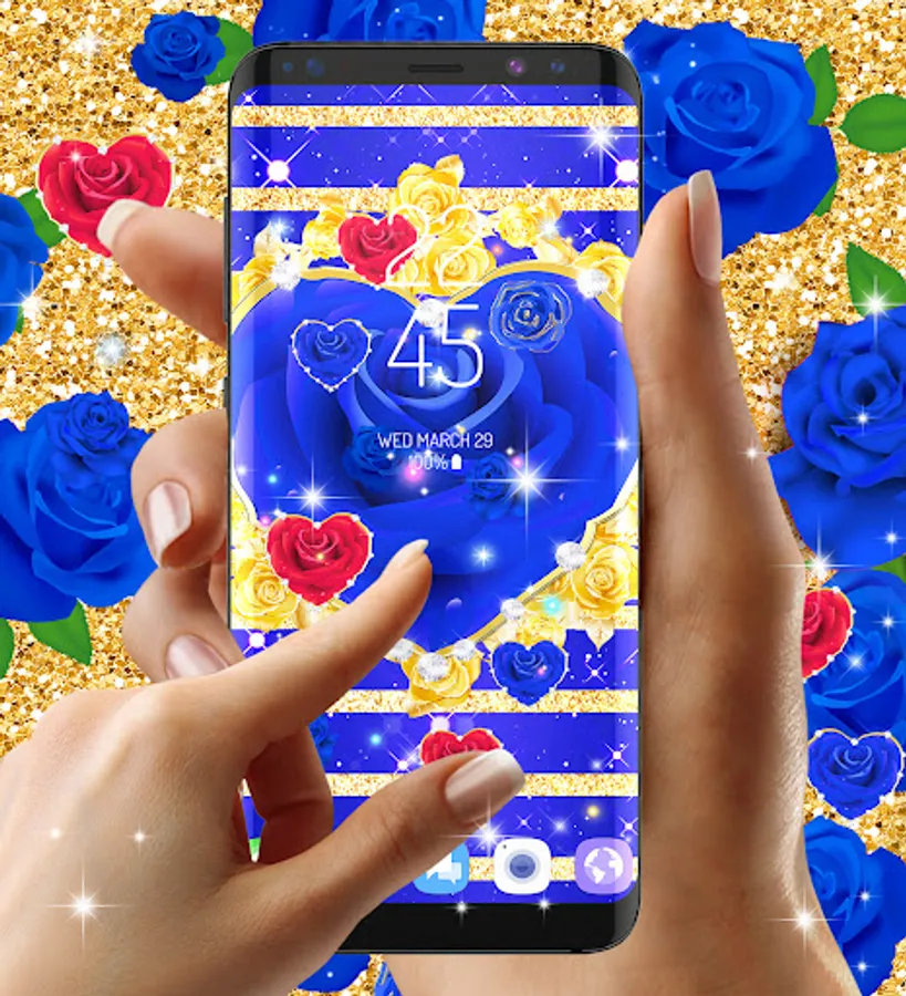 This live wallpaper will make your background look amazing, you can add blue, red, pink or gold roses that will fall on your screen in combination with a beautiful hd wallpaper or some luxury images with diamonds.