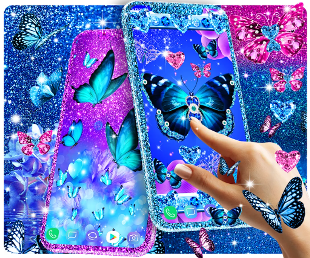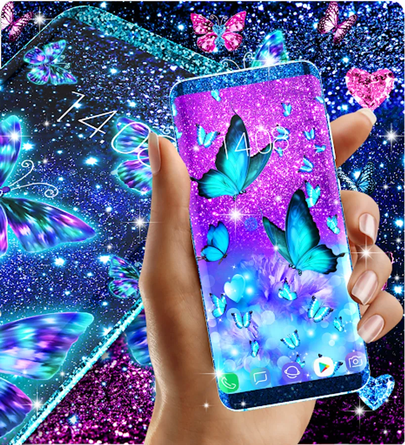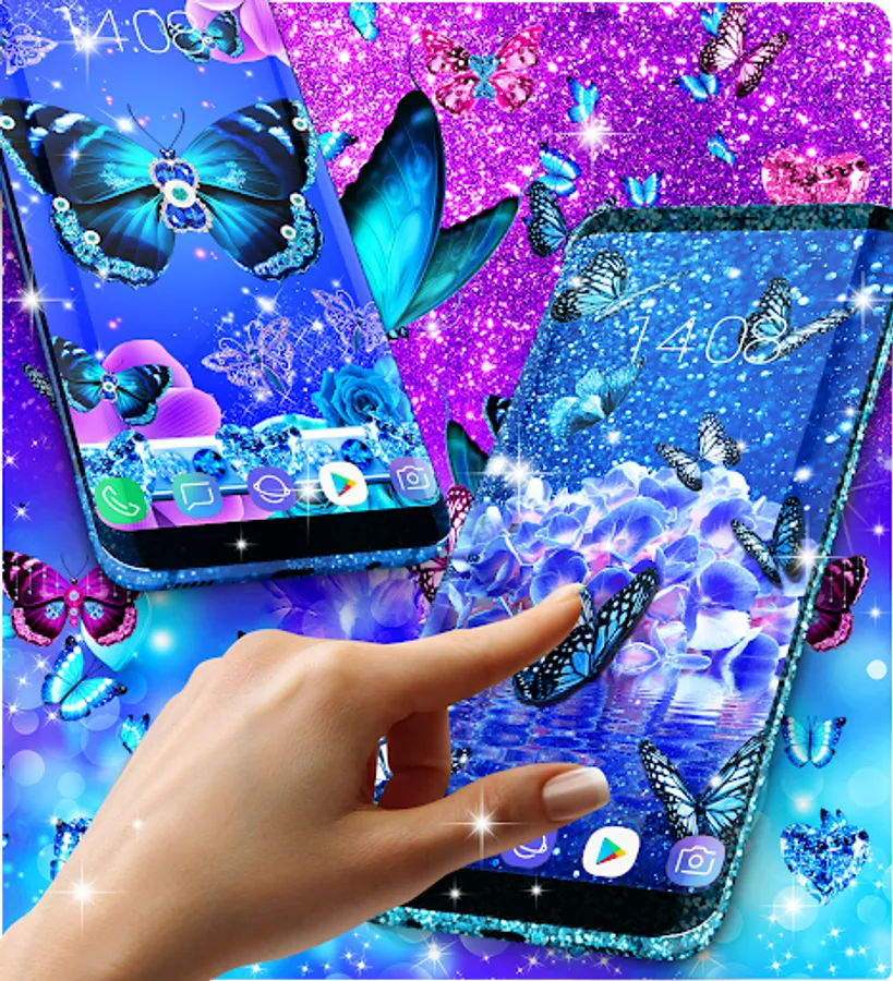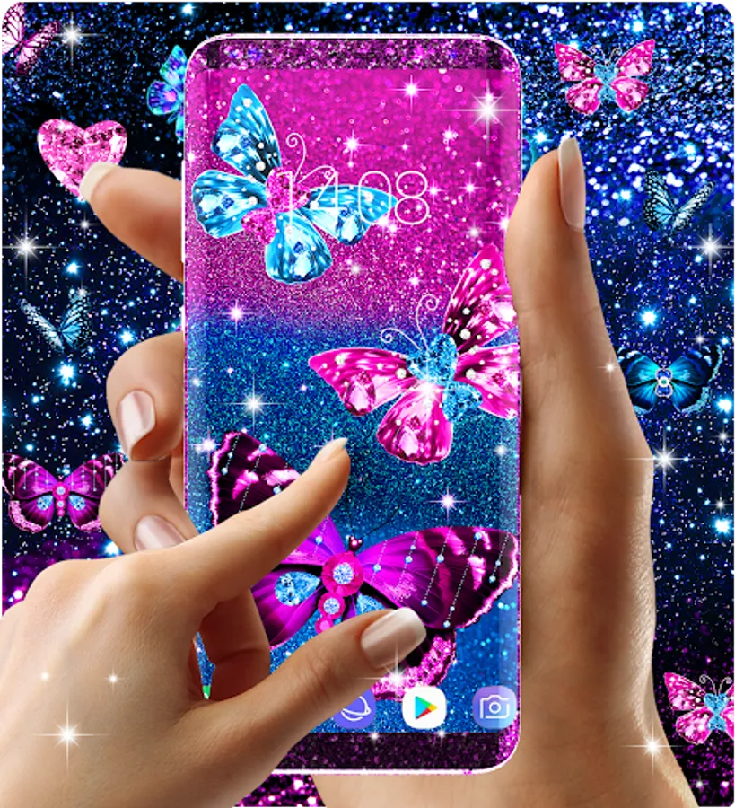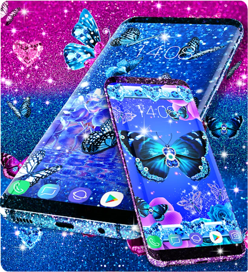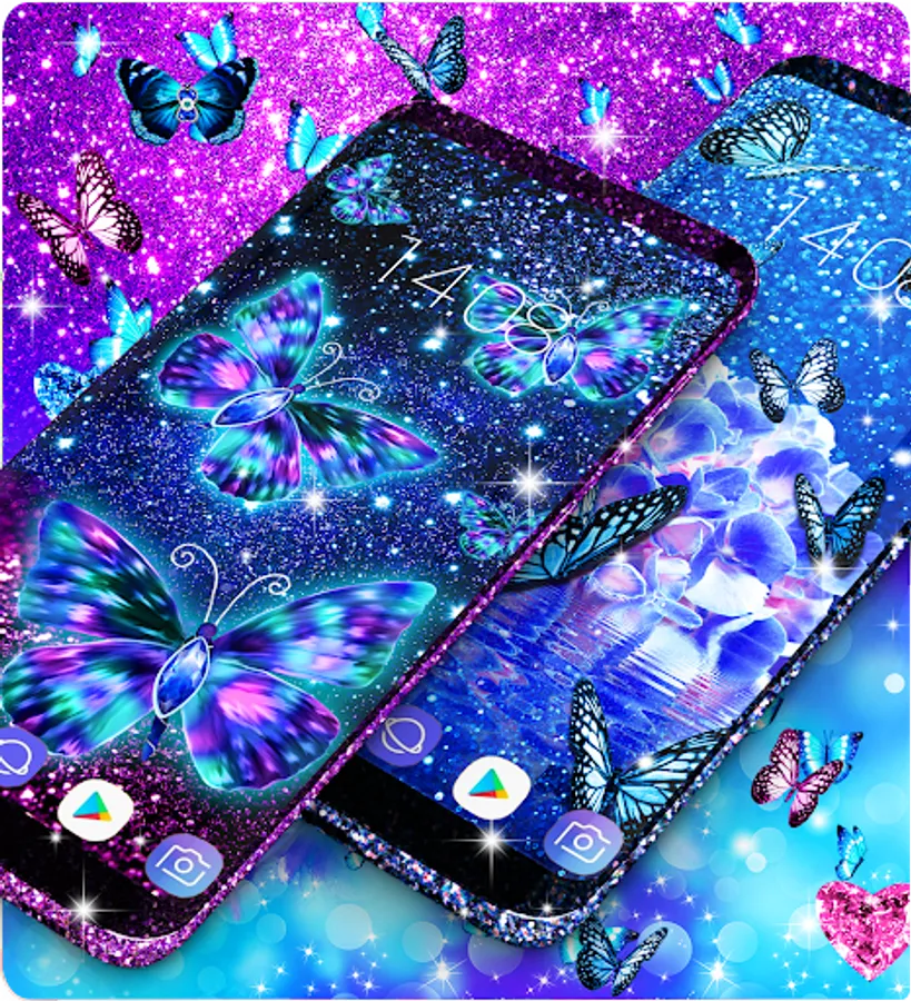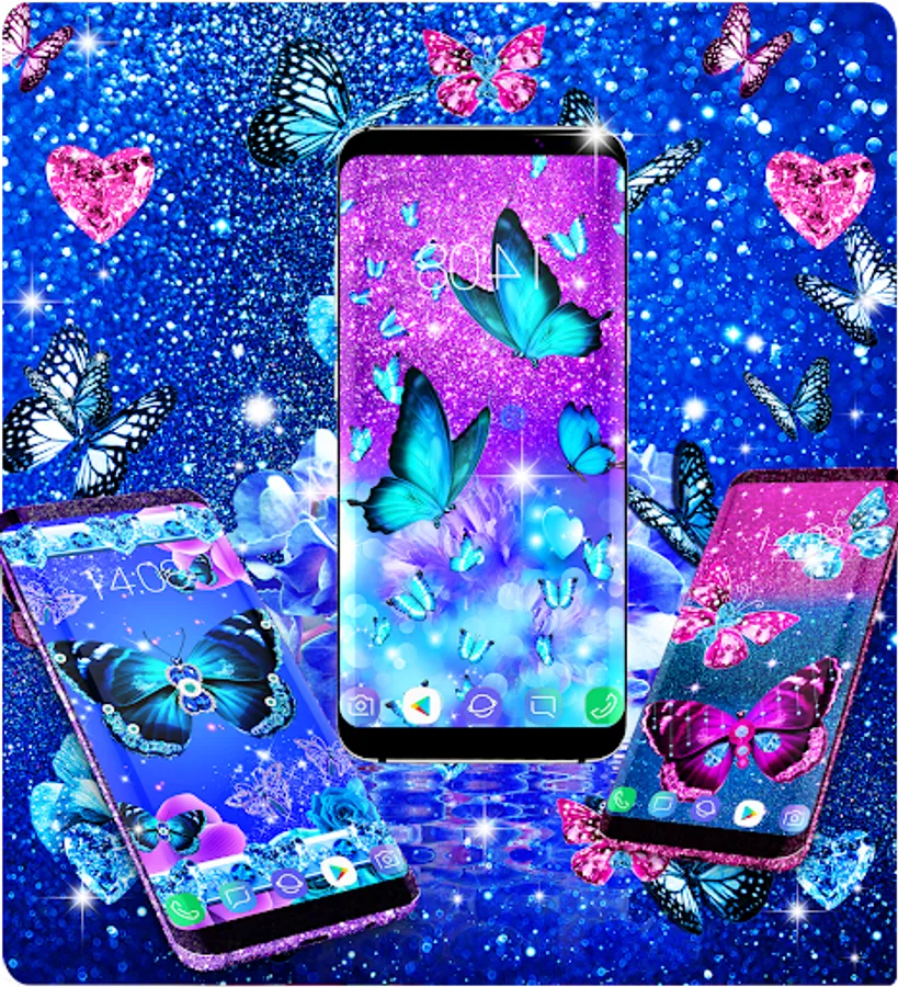 Perfect app to make your device glittery and colorful ! Glitzy butterflies with galaxy glitter colors especially purple and blue ,different styles and shapes backgrounds to apply on your android device.
