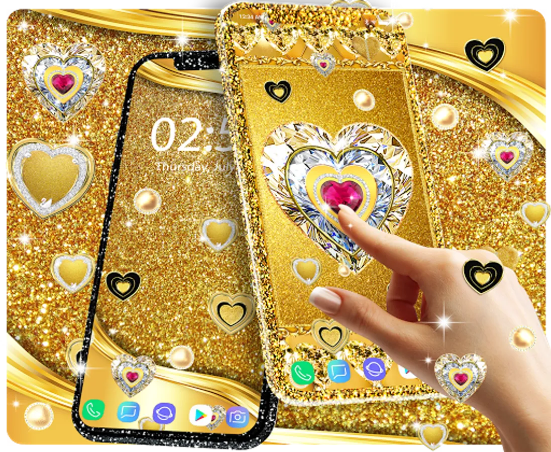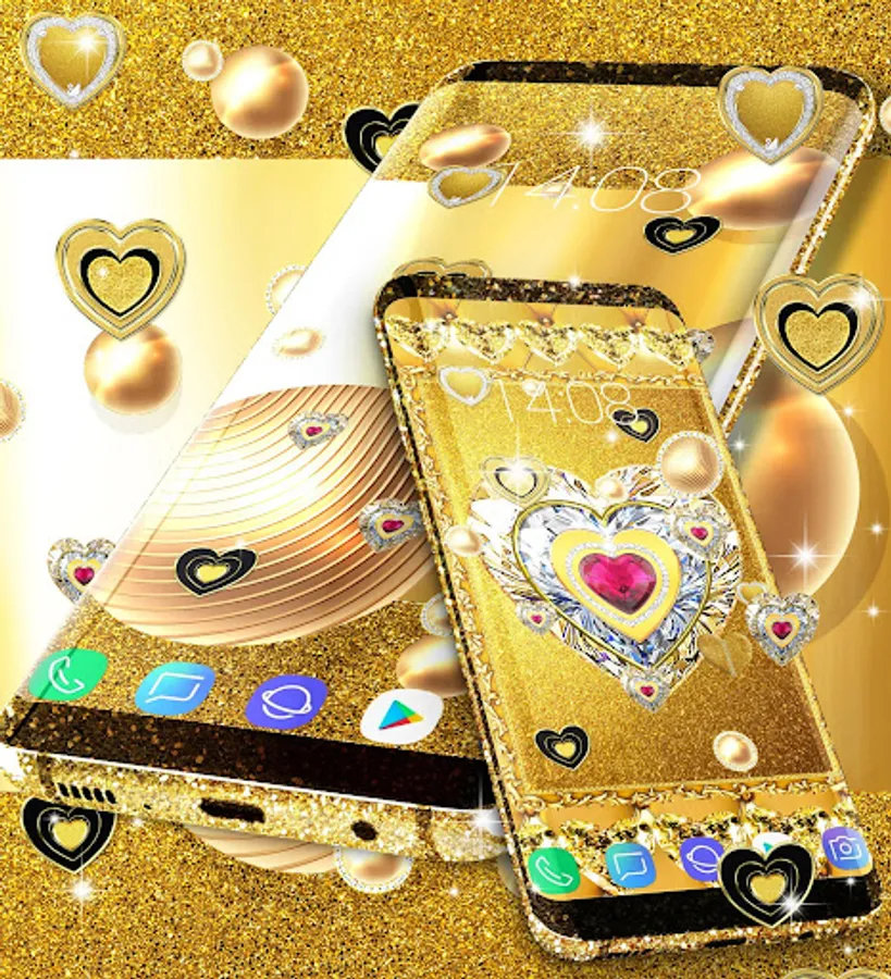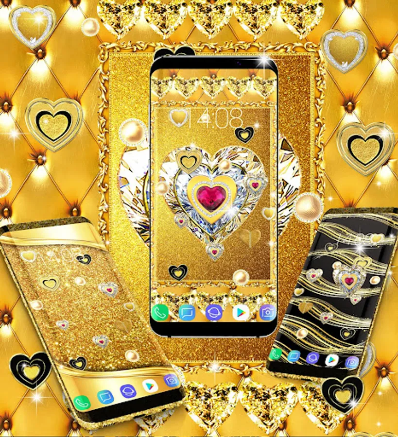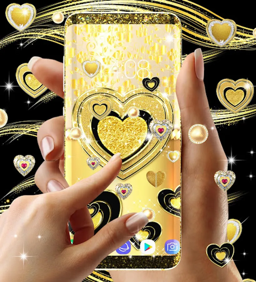 Live wallpaper app with beautiful hd golden elements and gold sparkling glitter. The backgrounds have stunning contrast, stylish golden combinations and glittery hearts with diamonds or gold black hearts.