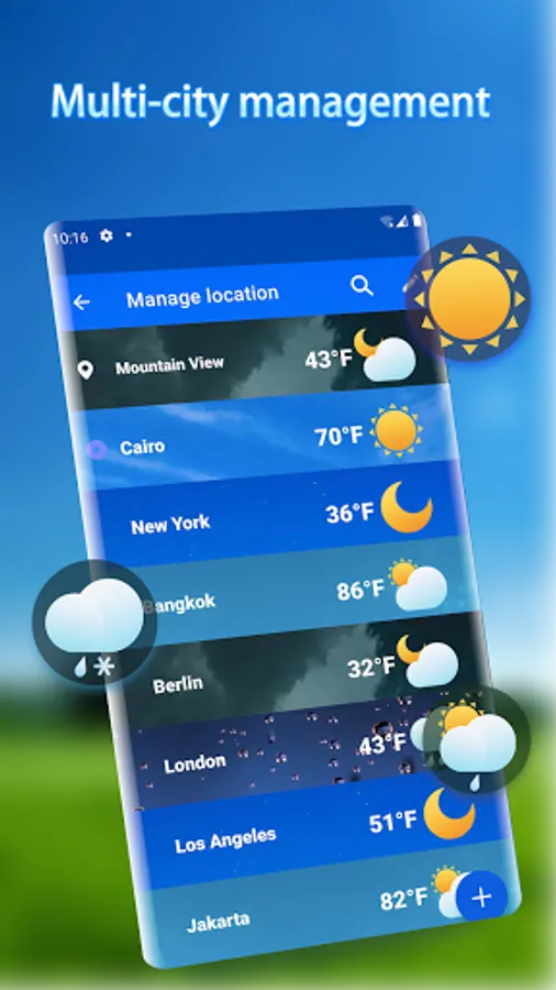View weather information for multiple cities at the same time, add or remove the city weather you want.