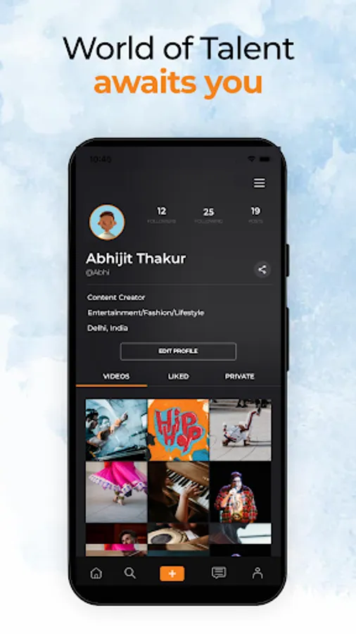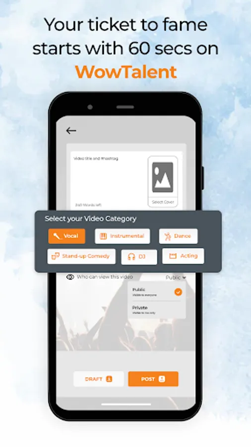 WowTalent is your space to discover unique talent from all around the world in six talent categories - Vocals, Instrumental, Dance, DJ, Standup Comedy, and Acting. The platform enables you to enjoy the artists performance for atleast 60 seconds per video. We enable the artist to share a longer performance for upto 10 minutes and for you to be enthralled by their creativity and talent.