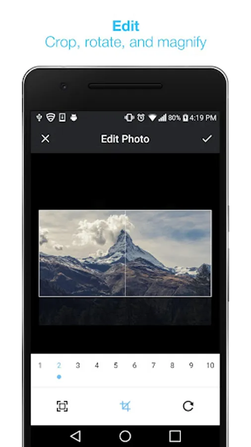 • Share a pic from the gallery, the browser, or anywhere else, right to the cropping app!