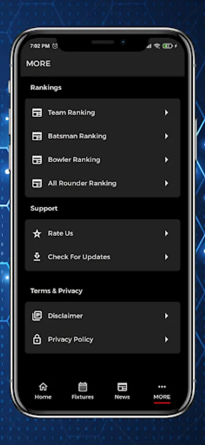 - ICC Rankings(Team,Batsman,Bowlers,All Rounders)