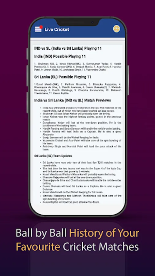 Shows All the Live Cricket Scores and Information in Real-time, along with ticketing and venue information. Now IPL Schedule is Available in the Notification Section.