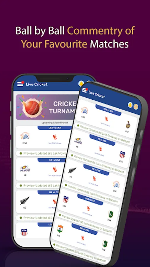 Our app provide Cricket Match Predictions for CPL, Asia Cup, IPL, Big Bash, PSL, BPL, T10, T20 World Cup, T20 International matches, etc.