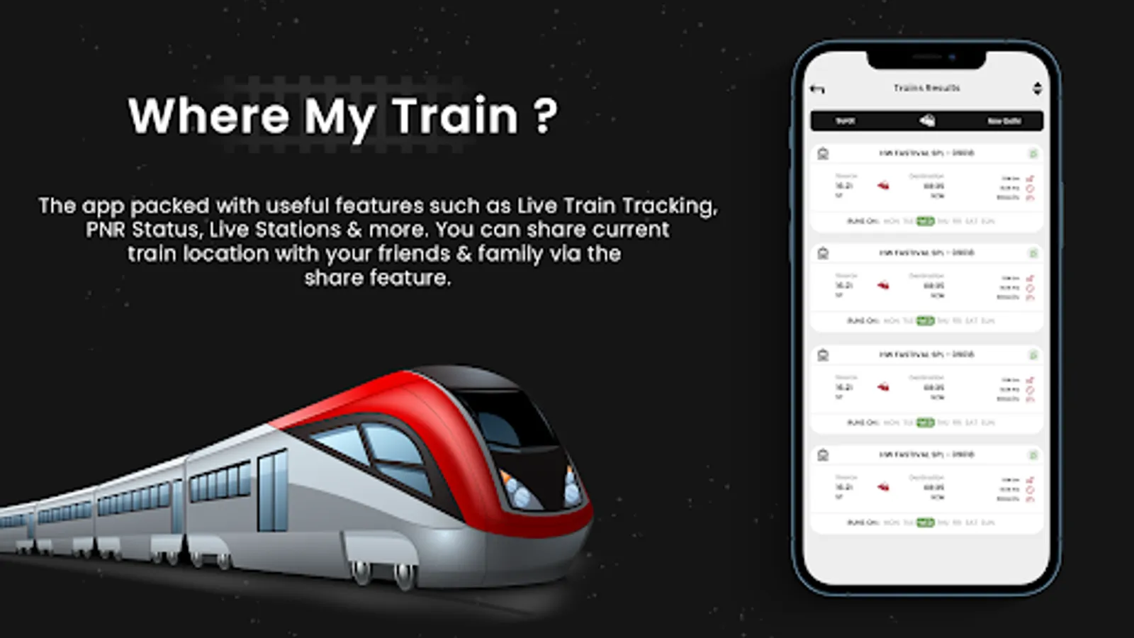 Disclaimer: Live Train Running Status PNR is a privately maintained app with no official affiliation or connection to Indian Railways, IRCTC, or other connected organisations. This app's material is for informational purposes solely and is designed for personal, non-commercial use only. You should double-check the information with official sources.