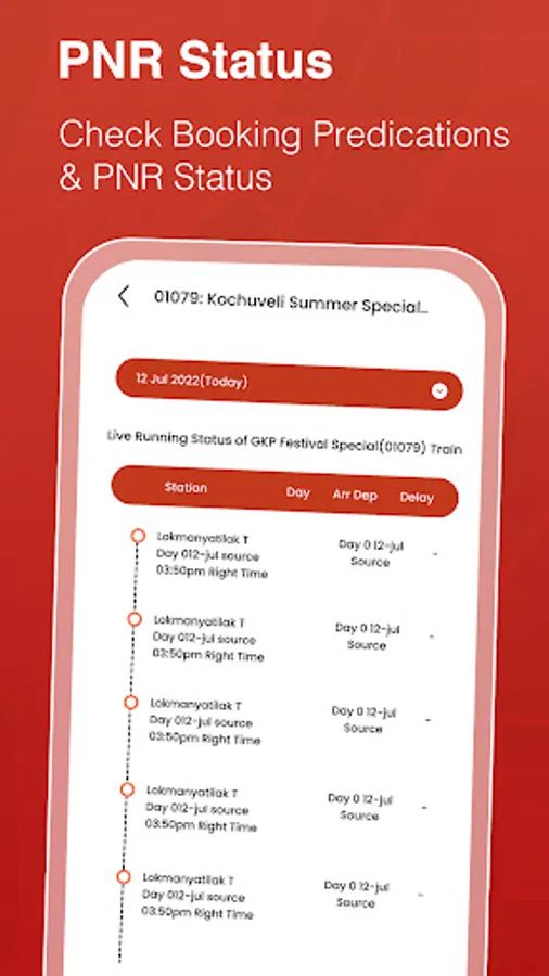 The top Indian railway app for receiving updates about trains in real time. See if your train is running on schedule or late. The in-app GPS feature provides you with information on the estimated train arrival times (ETA) for upcoming stops. Passengers can view the location of the train in real time by inputting the train name or number.