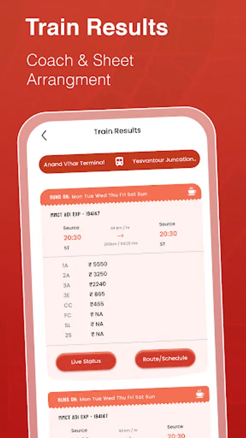 - All trains, both reserved and unreserved, between two stations are looked up.