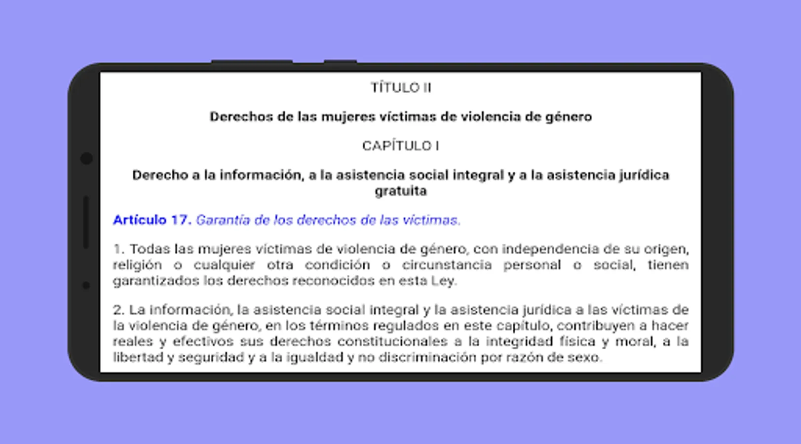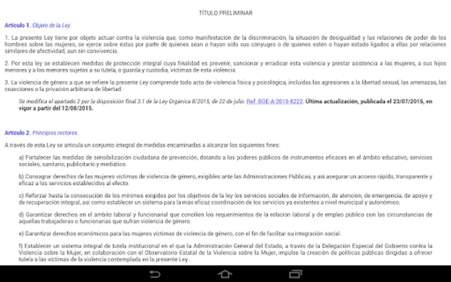 This application includes the full text of Organic Law 1/2004, of December 28, on Comprehensive Protection Measures against Gender Violence.
