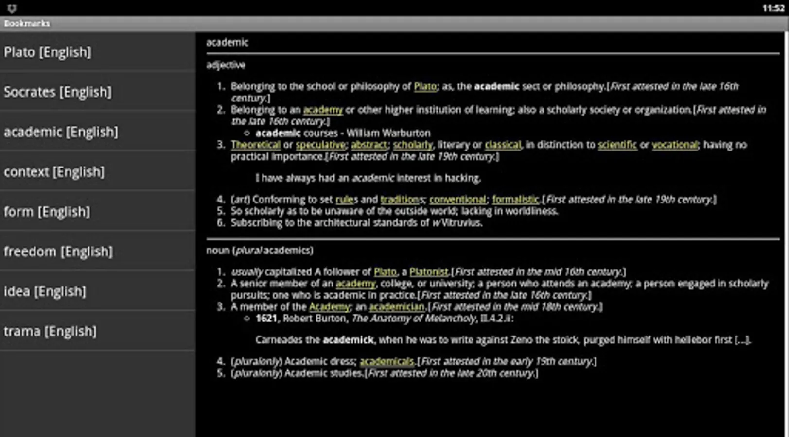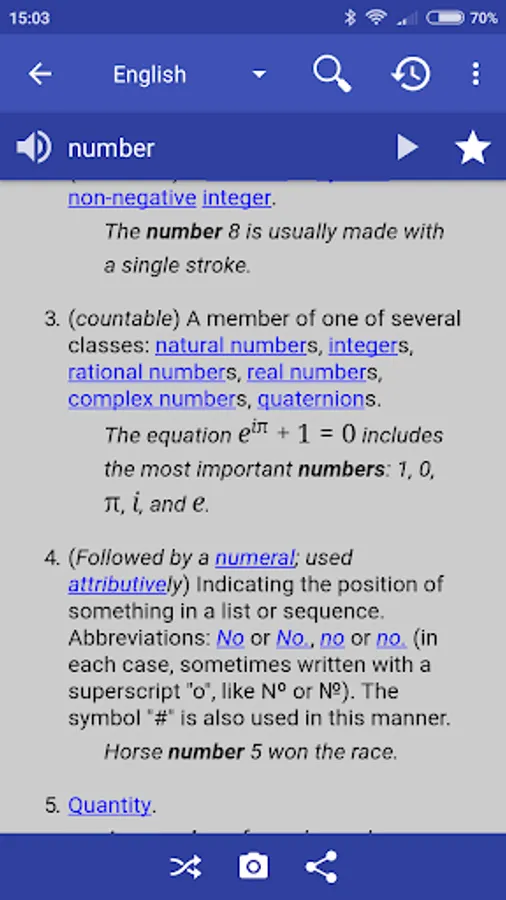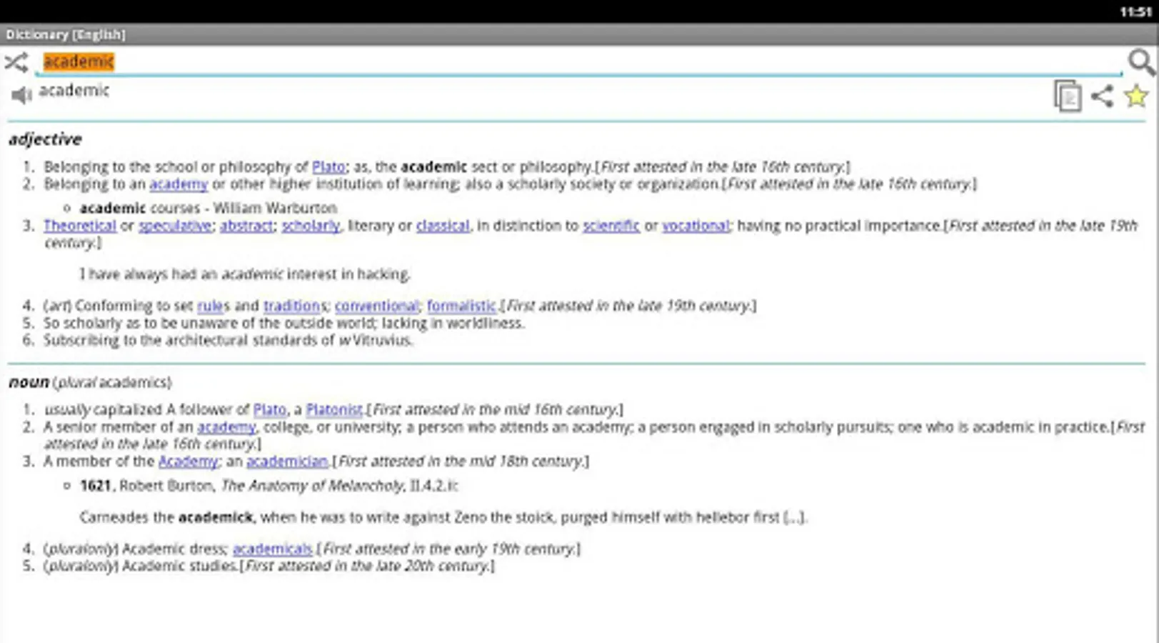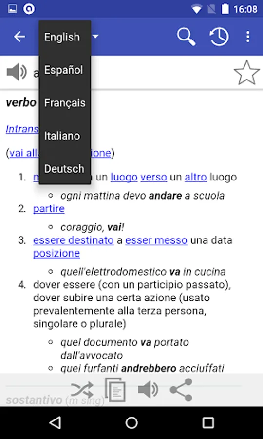 The online dictionary application explains the meaning of words based on English, Italian, French, Portuguese, German and Spanish Wiktionary. Light and free application without any ads!