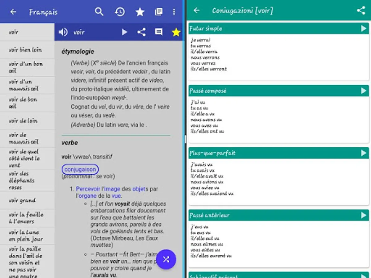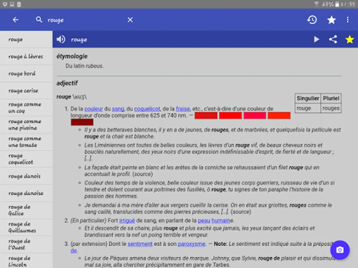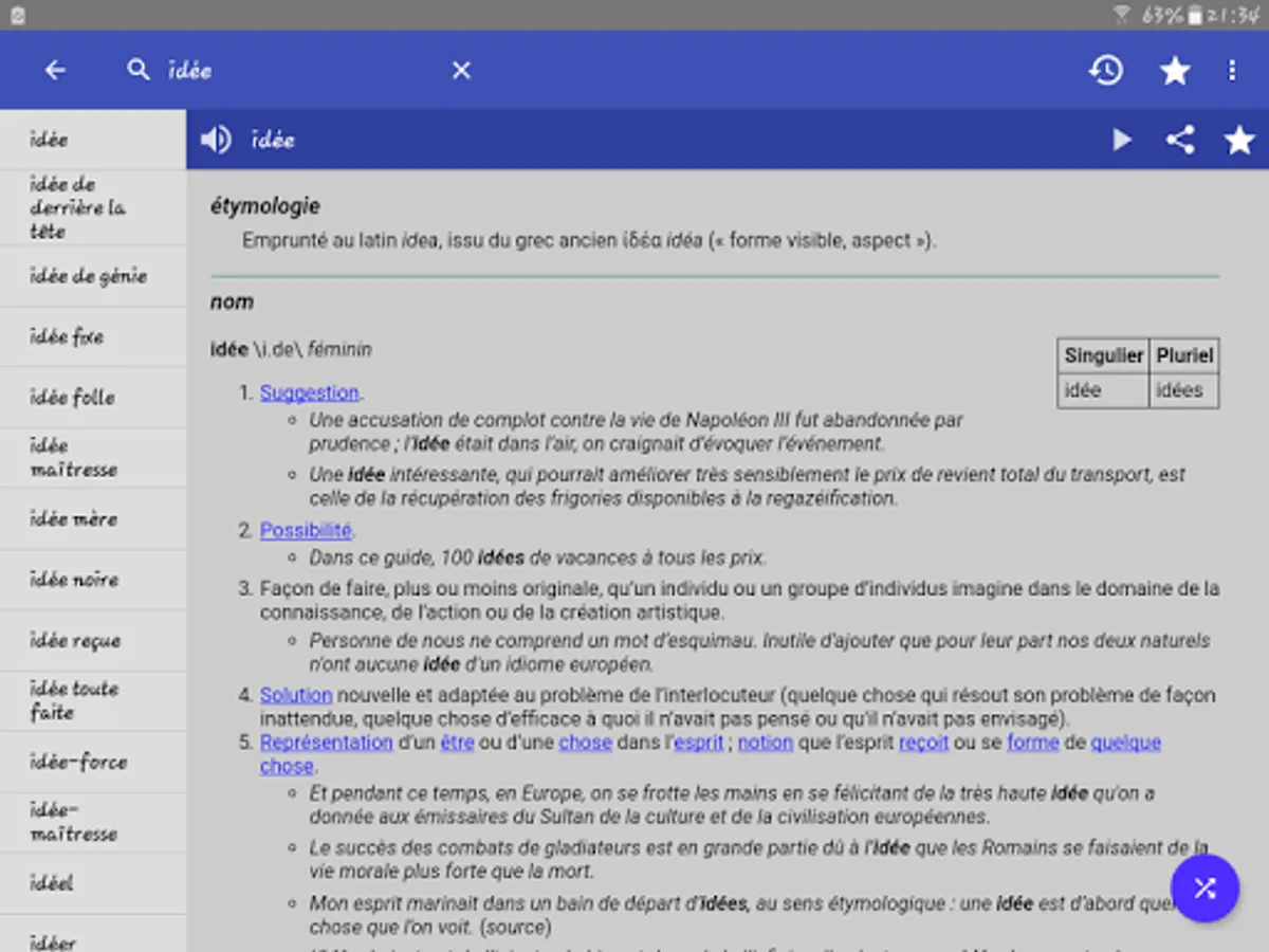♦ More than 327000 french definitions, large number of inflected forms and conjugation of verbs