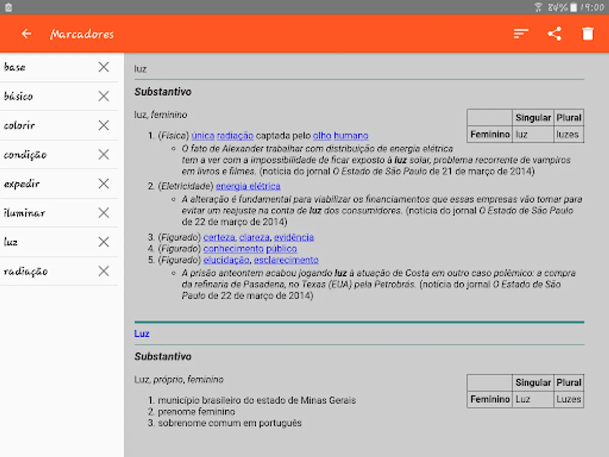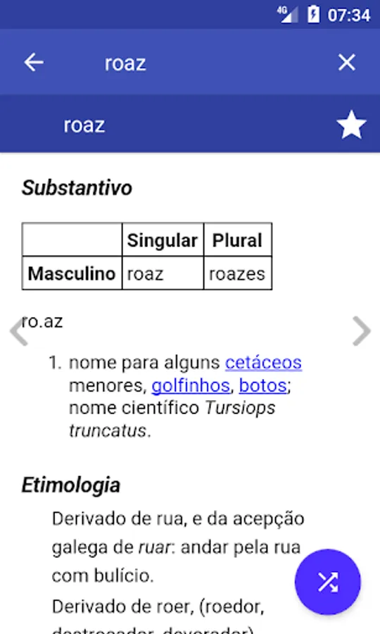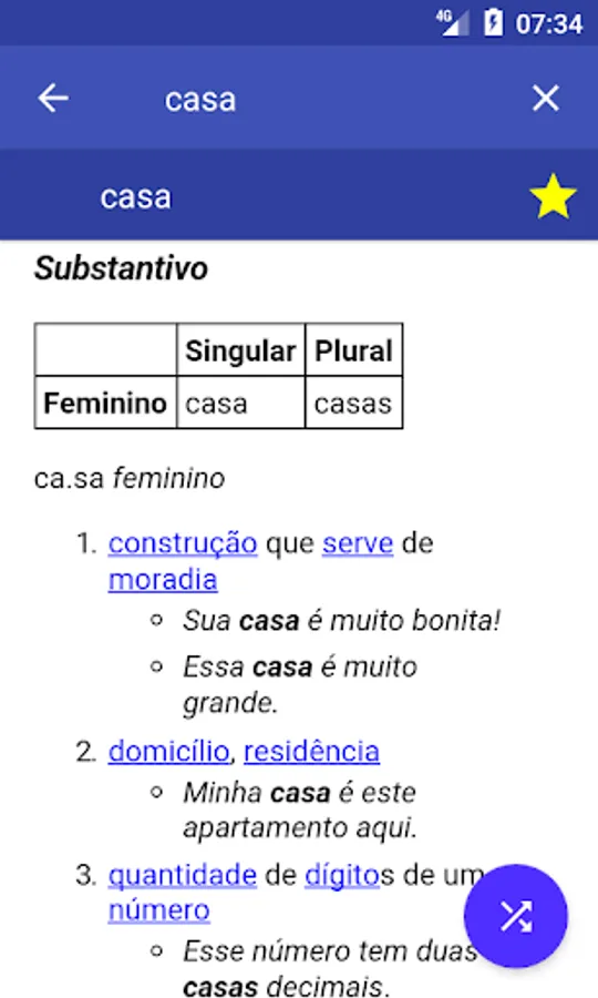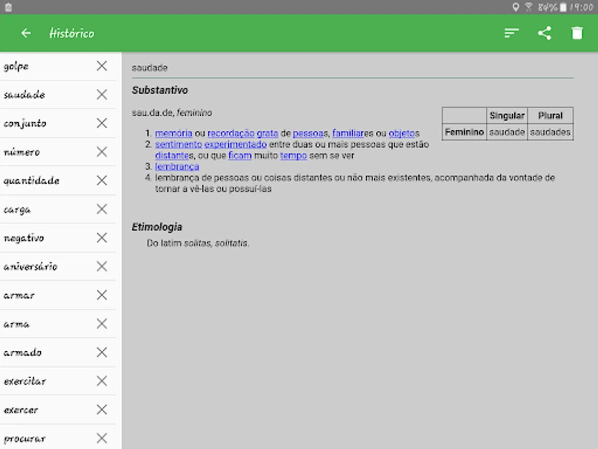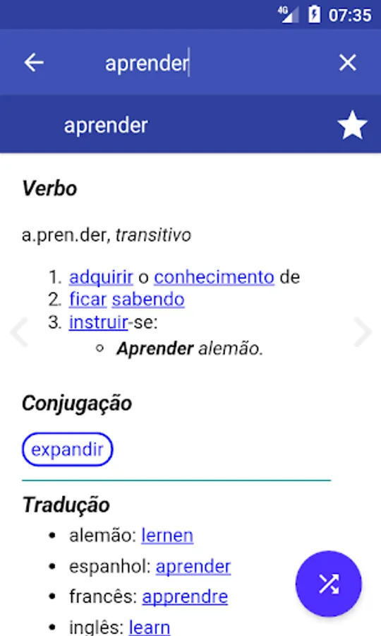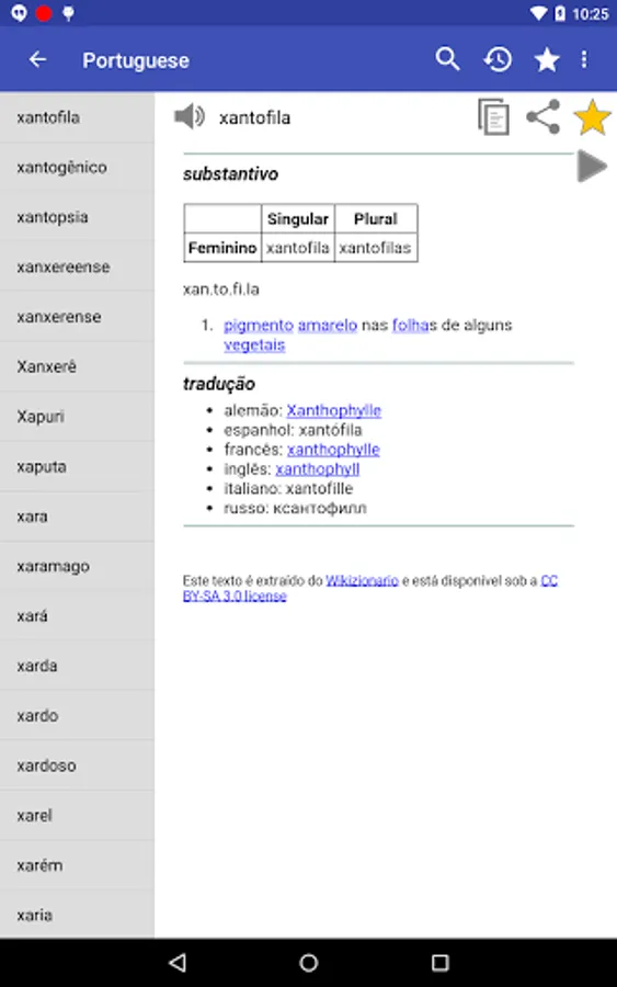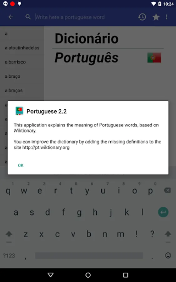 The free offline Portuguese dictionary application explains the meaning of Portuguese words! Definitions are based on Portuguese Wiktionary. This is a monolingual Portuguese dictionary: words must be entered in Portuguese language.