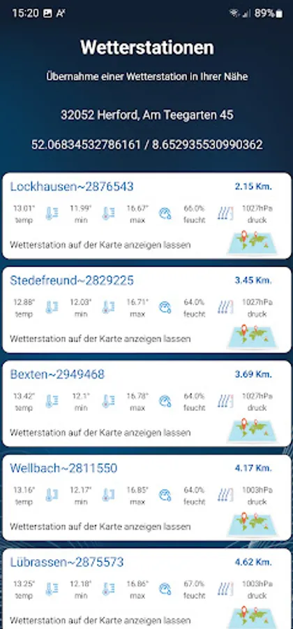 It also includes surrounding weather stations, which you can easily read in at your location using GPS coordinates.