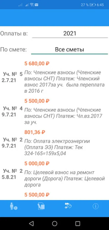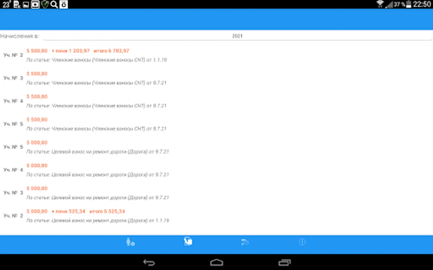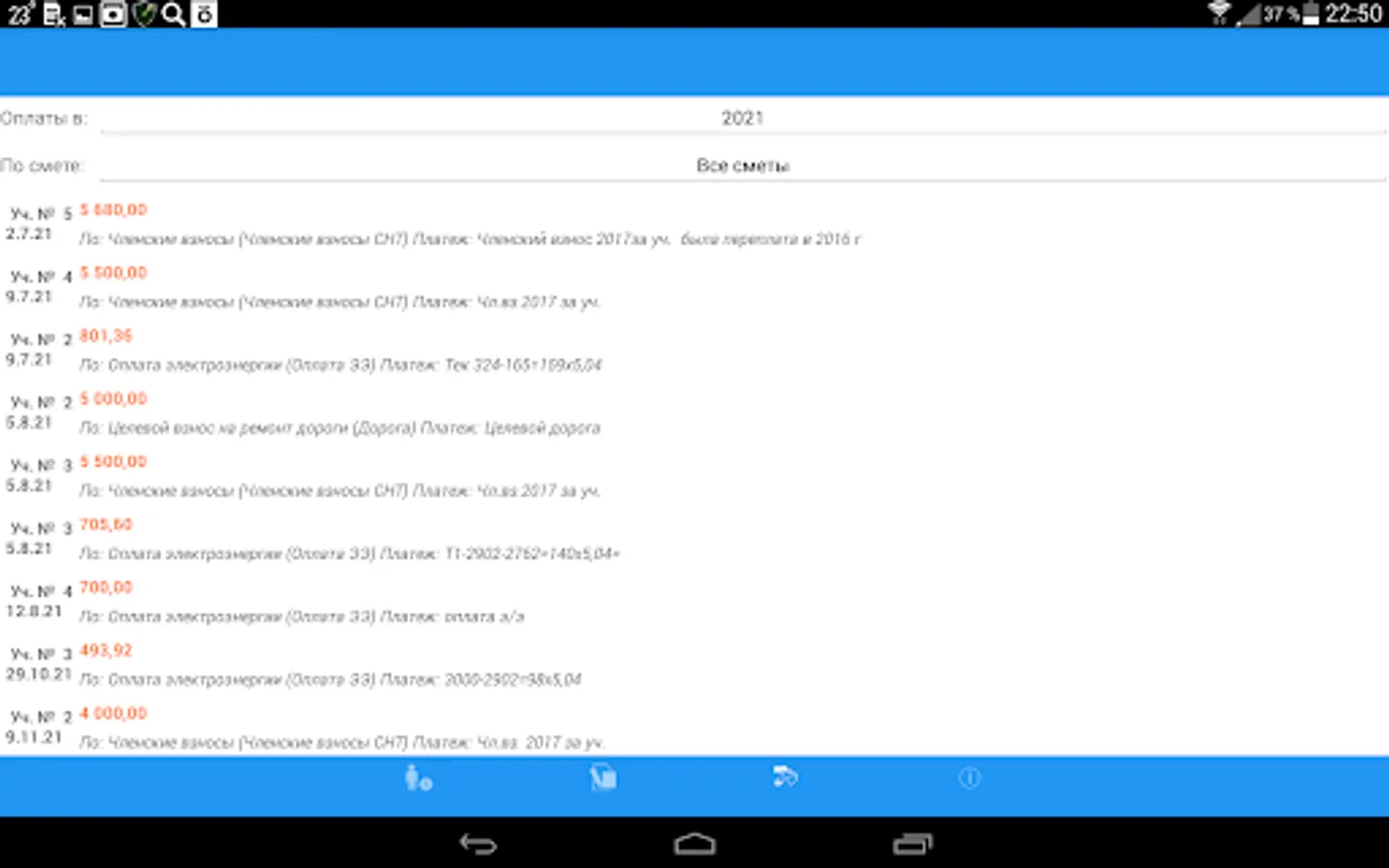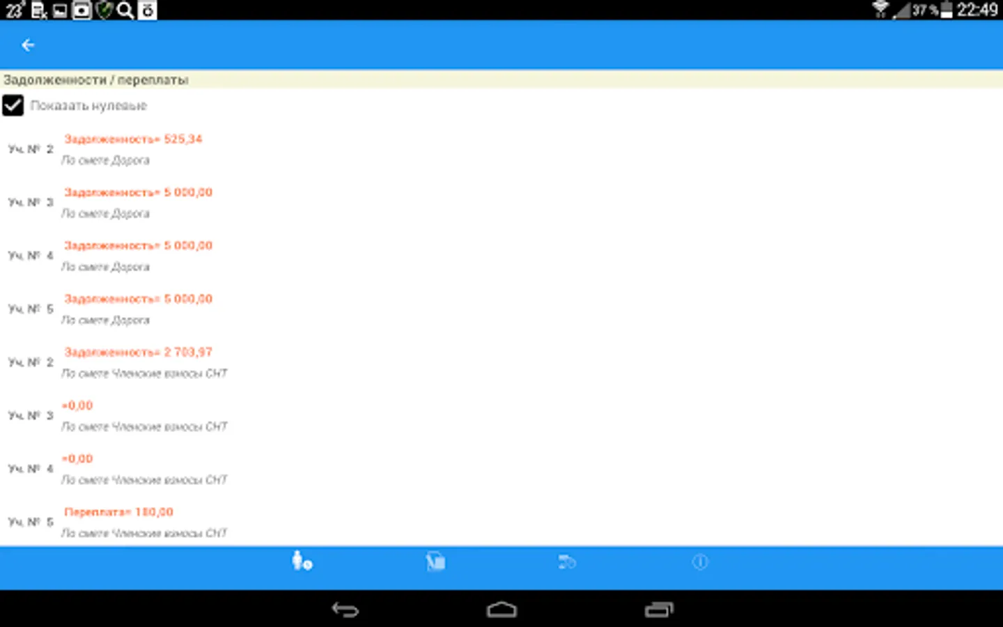 The personal account of the gardener SNT works in conjunction with the "Partnership Management" program and allows you to receive information about debts, charges and payments made for all periods of the gardening program.