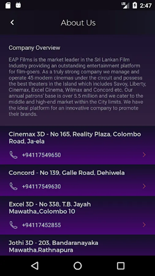 Savoy Cinema, Colombo also known as Savoy 3D Cinema and Savoy 2 is a prominent cinema in Sri Lanka located on Galle Road in Wellawatte, Colombo, just near the old Dutch canal. The building is owned and run by EAP Films and Theatres Private Limited.
