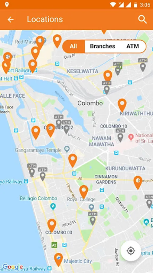 *Able to view Sampath bank branches and ATM locations