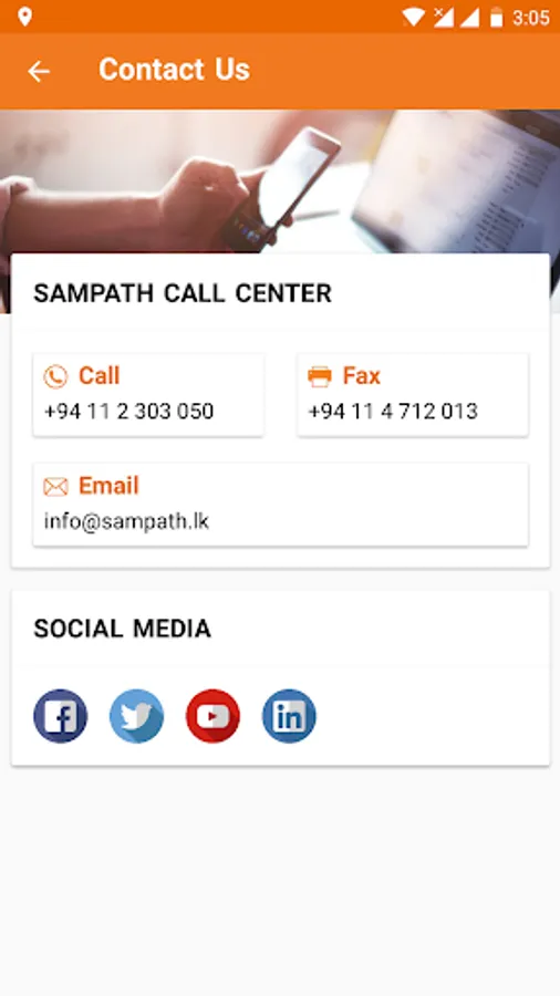 *Lists all the customer communication channels of the bank such as hotline, email, social media channels & support chat services