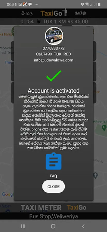 Need a ride immediately ?. Then you are looking at the right App. TaxiGo is a Sri Lankan online taxi hailing app with an accurate geo digital taxi meter for drivers. Works as same as a commercial roadside taximeter and is included the same MOT approved hire tariffs for eg. TUK Rs.40 per km. With you in mind, We choose only the well mannered, friendly and helpful drivers who will make you feel secured and well happy. For privacy concerns our drivers will not have any records about their respective clients after the completion of their journies. We also provide 24/7 telephone support and booking service.