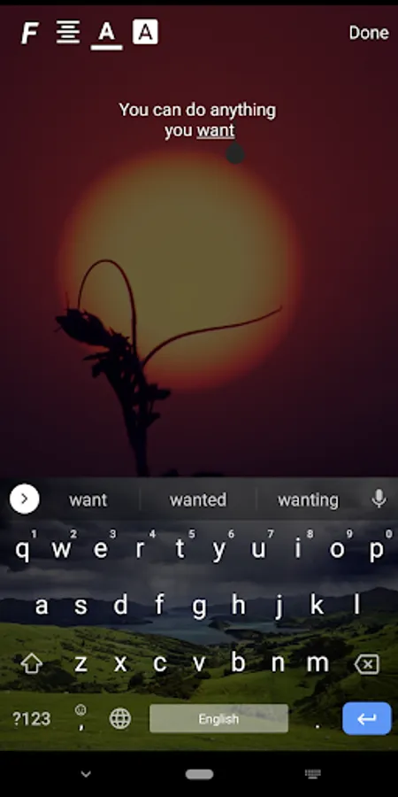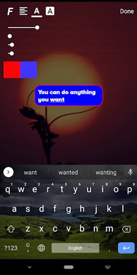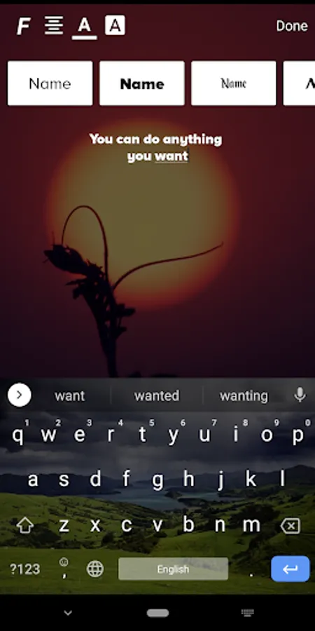 There are lots of Fonts to choose, Set alignments, Change text colour or change opacity and etc.