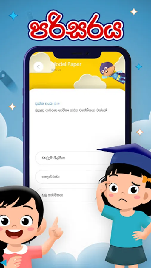 - ඕනෑම වේලාවක අහඹු ප්රශ්ණ 20 ක් තෝරාගෙන පුහුණුවිය හැකි Model Paper විශේෂාංගය.