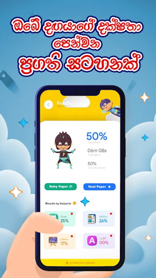 ★ දරුවාගේ දක්ෂතා හා දුර්වලතා විශයයන්ට අදාලව හඳුනාගෙන, දුර්වල විශයයන් වැඩිදුරටත් ප්රගුණ කිරීමට Hapan SuperKids මගින් දරුවාට මග පෙන්වනු ලබයි.